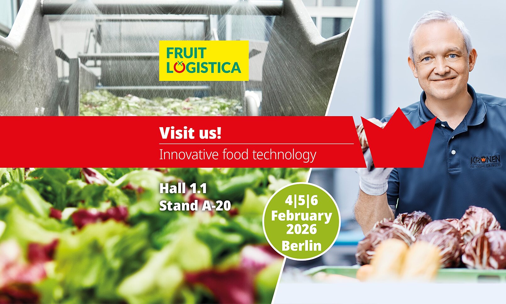 From February 4 to 6, 2026, KRONEN is presenting innovative, efficient solutions for fresh food processing at the Fruit Logistica trade show in Berlin. Come and visit us at stand A-20 in Hall 1.1!