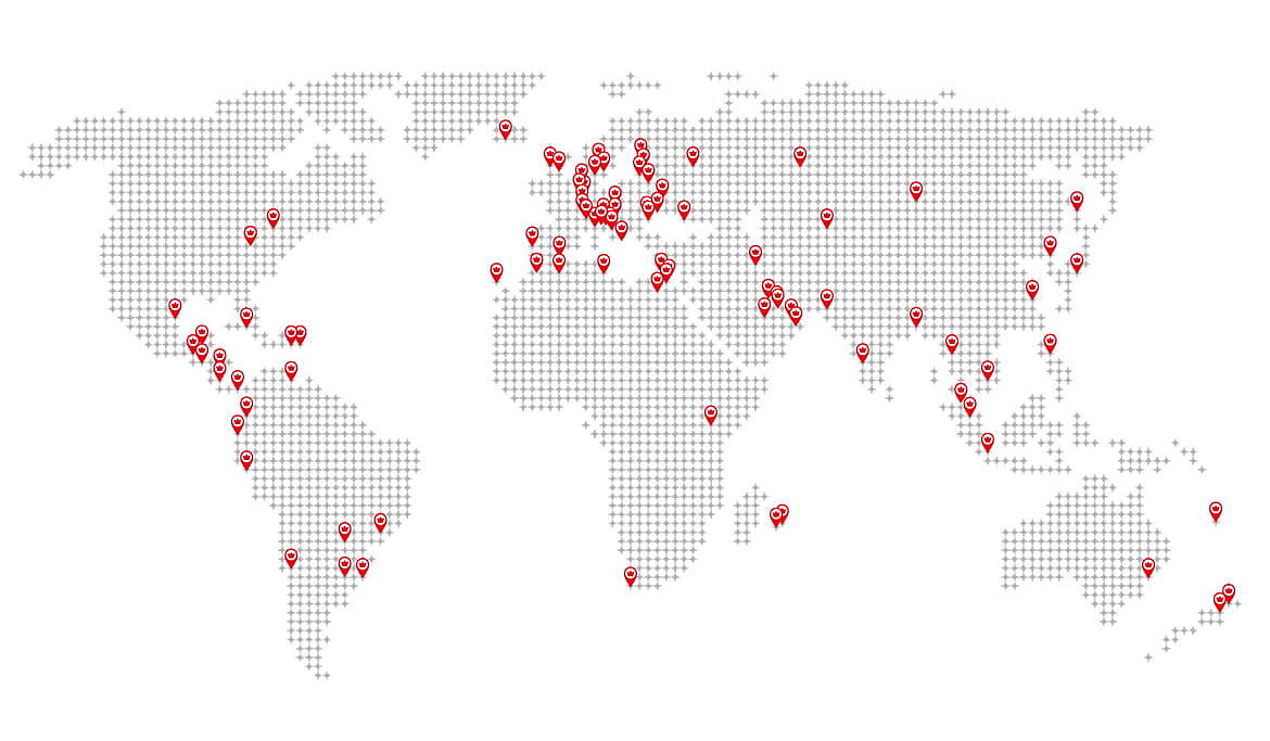 A través de los representantes en más de 80 países , estamos personalmente junto a nuestros clientes in situ y ofrecemos nuestras soluciones en alrededor de 120 países.
