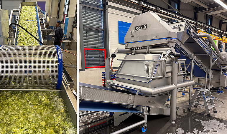 El especialista británico en productos frescos cortados Kanes Foods ha modernizado su producción: una línea de procesamiento adaptada a las necesidades del cliente por KRONEN, compuesta por máquinas nuevas y ya existentes, permite alcanzar una capacidad de hasta 1.4 toneladas de lechuga iceberg por hora.