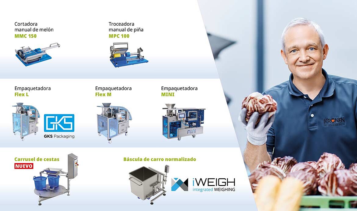 Nuestra presentación en la feria se centrará en máquinas probadas en la práctica y en nuevas para el procesado industrial de lechugas, hortalizas, frutas y mucho más. Nuestro equipo internacional de KRONEN realizará demostraciones in situ de una amplia gama de aplicaciones, desde máquinas individuales hasta componentes para soluciones de líneas integradas.