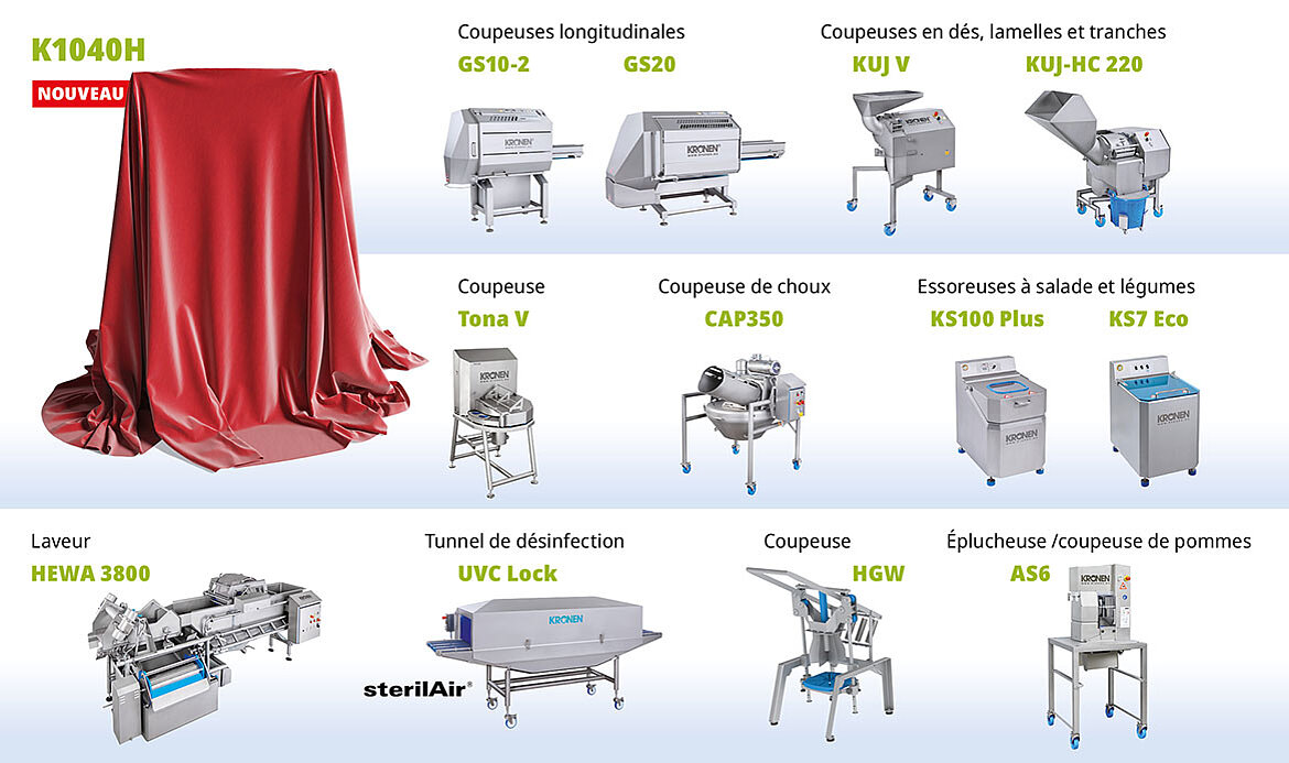 Lors du salon, nous mettrons en avant des machines éprouvées et innovantes dédiées à la transformation industrielle des salades, légumes, fruits et autres produits. L’équipe internationale de KRONEN présentera en direct une vaste gamme d’applications, des machines autonomes aux composants destinés aux solutions de lignes intégrées.