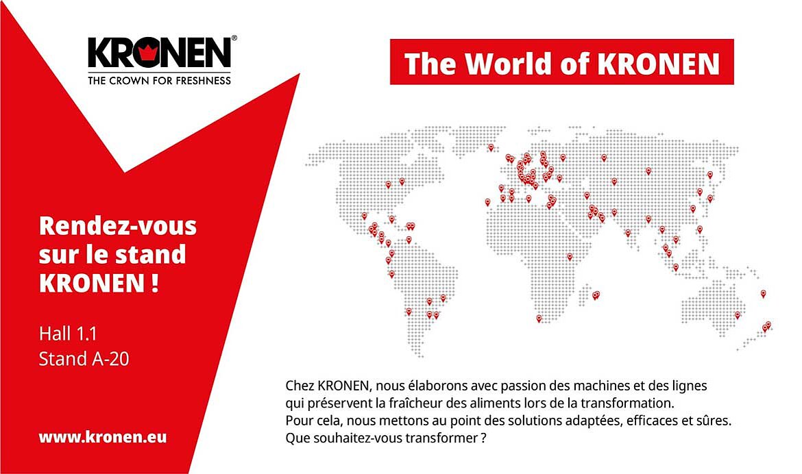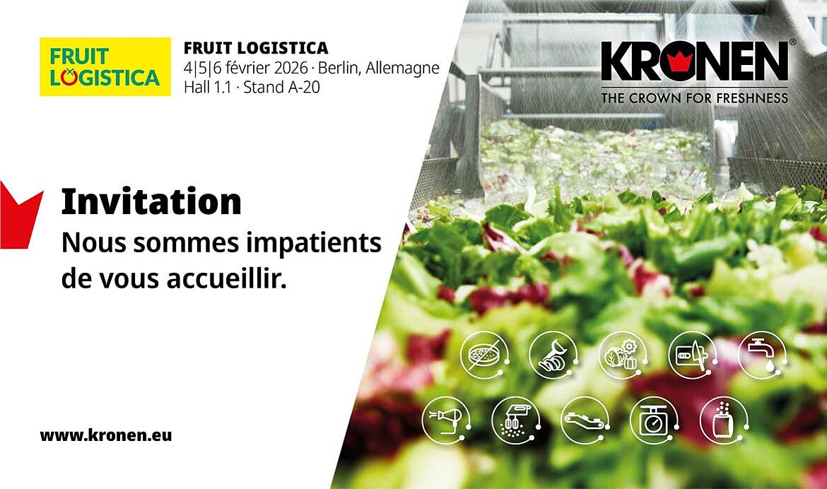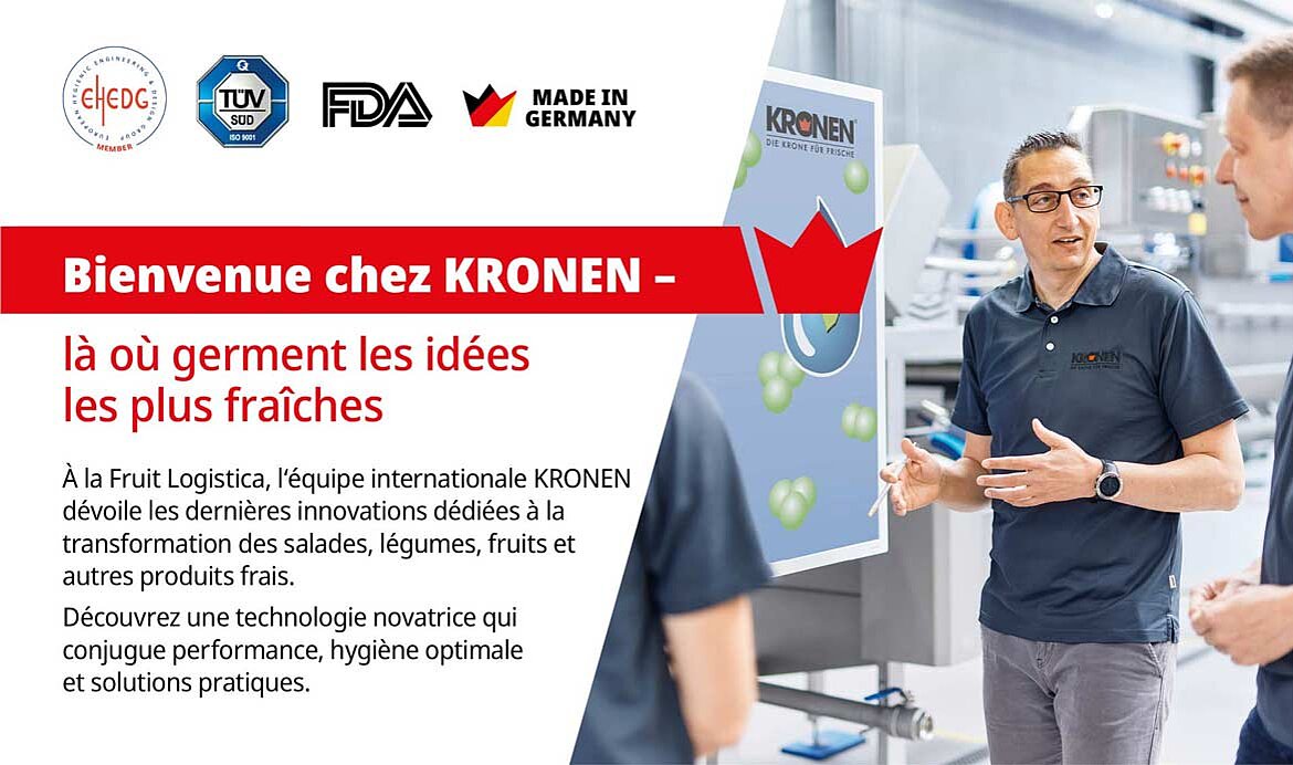 Présent au salon Fruit Logistica de Berlin, du 4 au 6 février 2026, KRONEN exposera des solutions innovantes et efficaces pour transformer des aliments frais. Rendez-nous visite au stand A-20, hall 1.1 !