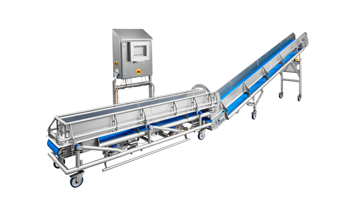 La construction ouverte et hygiénique en acier inoxydable ainsi que les barres de maintien de la courroie facilitent le nettoyage.